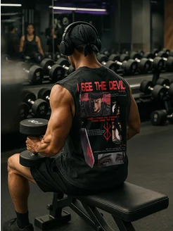 Майка мужская белая для спорта и фитнеса без рукавов