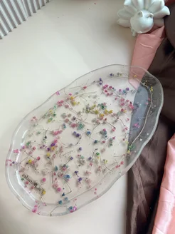 Поднос интерьерный из эпоксидной смолы с сухоцветами