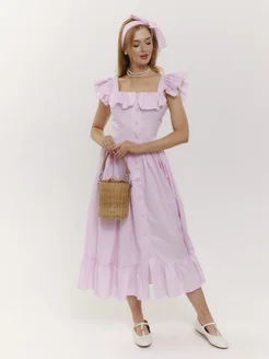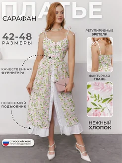 Сарафан платье летнее длинное хлопок розовое с поясом