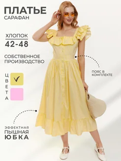 Сарафан платье летнее длинное хлопок желтый с поясом
