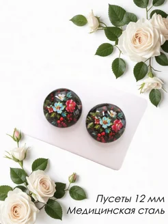 Серьги пусеты медицинская сталь 12 мм Жостовская роспись