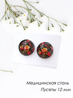 Серьги пусеты медицинская сталь 12 мм Хохлома