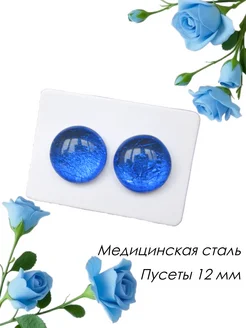 Серьги пусеты медицинская сталь 12 мм Гжель