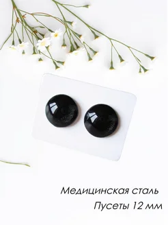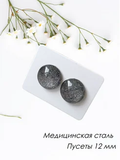Серьги пусеты медицинская сталь 12 мм Ночь
