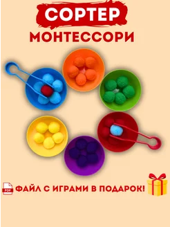 Сортер по цветам монтессори тарелочки с пинцетом для детей
