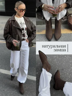 Ботинки казаки замшевые демисезонные