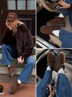 Угги зимние на платформе короткие