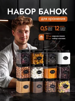 Контейнер для круп и хранения сыпучих 500 мл 12 шт