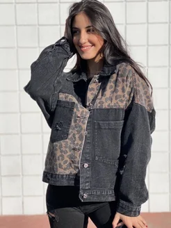 Джинсовая рубашка куртка оверсайз с леопардовым принтом