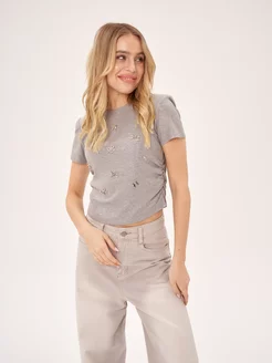 Футболка y2k coquette укороченная кроп топ в рубчик