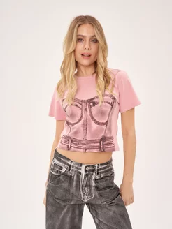 Футболка короткая с принтом корсета