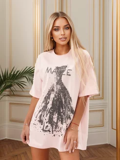 Футболка со стразами и пайетками длинная