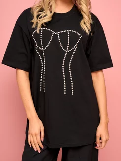 Футболка нарядная оверсайз со стразами