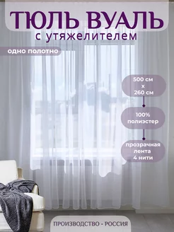 Тюль в гостиную и спальню белый 500*260 на ленте готовый