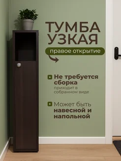 Узкая напольная тумба в ванную Венге