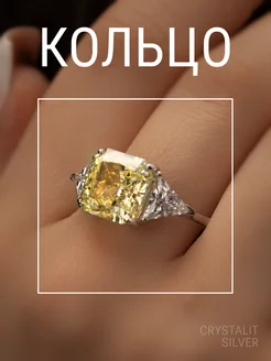 Коктейльное кольцо серебро 925 с крупным камнем ice crush