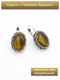 Серьги с натуральным тигровым глазом
