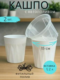 Кашпо с фитильным поливом, набор 2 шт, 15 см