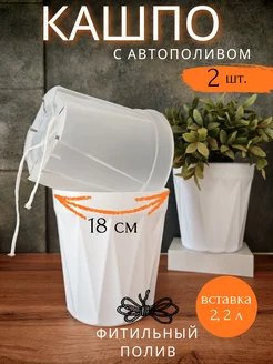 Кашпо с фитильным поливом, набор 2 шт, 18 см
