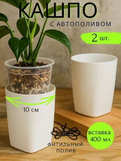 Кашпо с фитильным поливом, набор 2 шт, 10 см