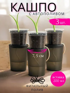 Кашпо с фитильным поливом, набор 3 шт, 7, 5 см