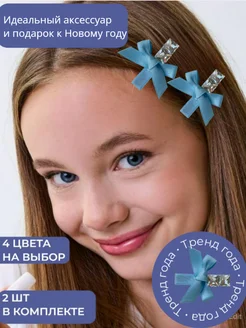 Заколки бантики для волос голубые 2 шт