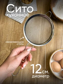 Металлическое сито с ручкой для муки и процеживания 12 см