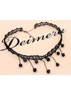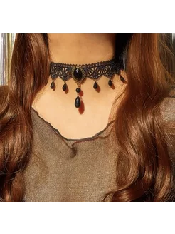 Чокер на шею женский кружевной черный атласный подвеска