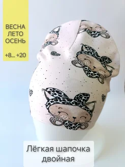 Шапка на осень трикотажная, двухслойная с котятами лео