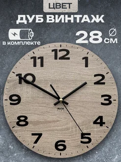 Часы настенные круглые бесшумные 28см дуб винтаж