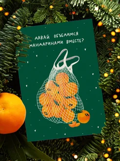 Новогодняя открытка "Давай объедимся мандаринами вместе?"