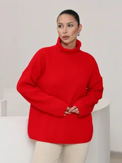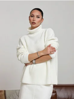 Свитер оверсайз длинный вязаный с высоким воротом