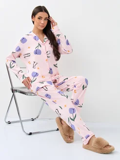 Пижама женская со штанами и рубашкой хлопок с сердечками