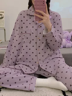 Милая фиолетовая y2k пижама с сердечками
