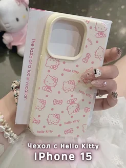 Бежевый чехол с Hello Kitty на iPhone 15