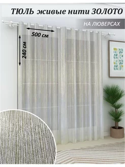 Тюль в гостиную на люверсах Живые нити золото, 500х240-1шт