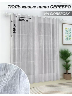 Тюль в гостиную на люверсах Живые нити серебро, 600х240-1шт