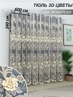 Тюль в гостиную на люверсах 3D Цветы, 600х240-1шт