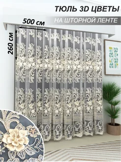 Тюль в гостиную спальню 3D Цветы, 500х260-1шт