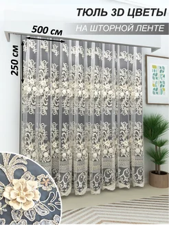 Тюль в гостиную спальню 3D Цветы, 500х250-1шт