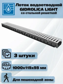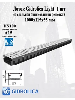 Лоток Gidrolica Light со стальной оцинкованной решеткой 1 шт