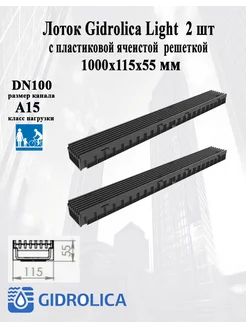 Лоток Gidrolica Light с пластиковой ячеистой решеткой 2 шт