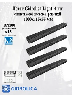 Лоток Gidrolica Light с пластиковой ячеистой решеткой 4 шт