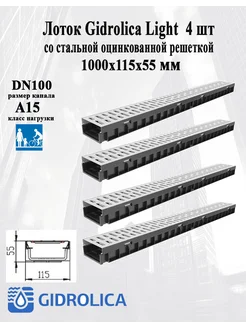 Лоток Gidrolica Light со стальной оцинкованной решеткой 4 шт