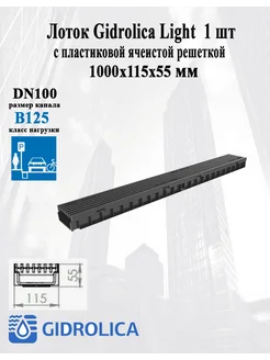 Лоток Gidrolica Light с ячеистой усиленной решеткой 1 шт