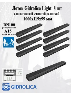 Лоток Gidrolica Light с пластиковой ячеистой решеткой 8 шт