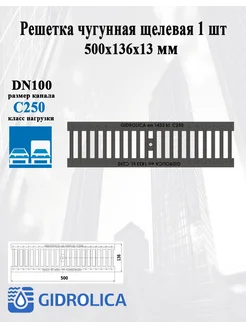 Решетка чугунная щелевая Gidrolica Standart облегченная 1 шт