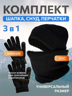 Комплект шапка зимняя с перчатками и снудом