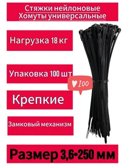 Хомут для стяжки нейлоновый пластиковый 250х3,6 (100шт)