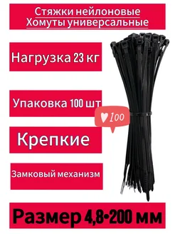 Хомут для стяжки нейлоновый пластиковый 200х4.8 (100шт)